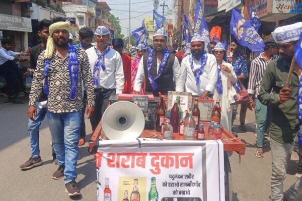 आज बहुजन समाज पार्टी के नेता व पूर्व महापौर प्रत्याशी शमसूल आलम ने कार्यकर्ताओं के साथ आबकारी विभाग के सहायक आबकारी आयुक्त यदुनंदन राठौर की मंशा के खिलाफ शहर में एक भी नई शराब दुकान खुलने पर रोक लगाने के लिए चलित शराब दुकान बनाकर पूरे शहर के मुख्य चौक (म्युनिसिपल स्कूल गांधी सभाग्रि के…