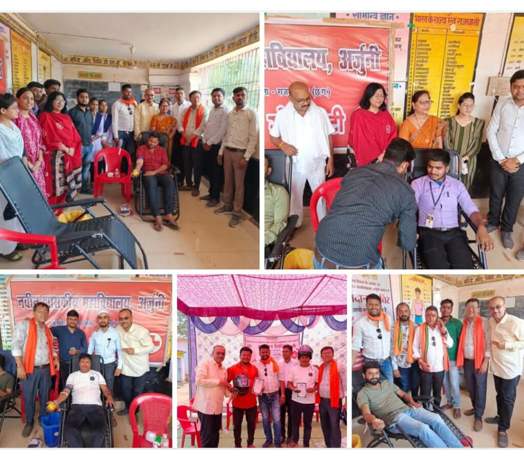 बता दे की अर्जुनी निवासी फ़नेंद्र जैन अब तक 130 बार रक्तदान कर लोगो की जीवन बचाने में सहायता प्रदान किए है साथ ही छात्र युवा मंच के संयोजक रक्तवीर नागेश यदु ने 51 एवं हेलमेट संगवारी धर्मेन्द्र साहू द्वारा 50 रक्तदान कर चुके है और यह क्रम अभी तक जारी है।
