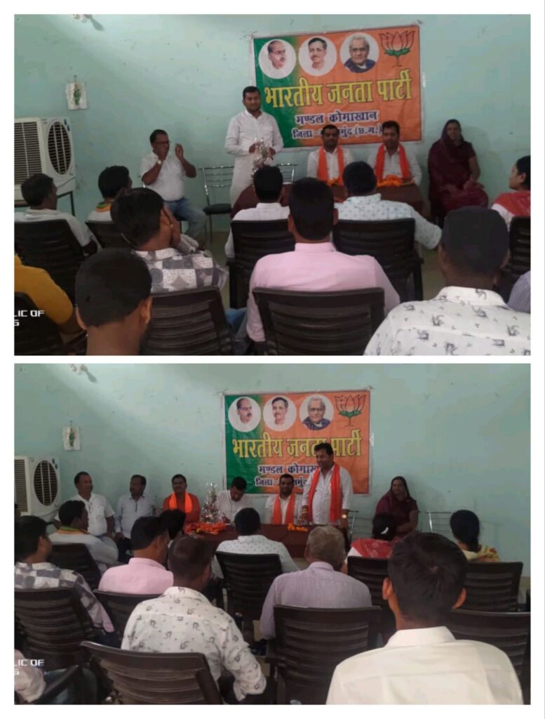 भाजपा मंडल कोमाखान में भाजपा जिला महासमुंद के नेतृत्व में विकसित भारत संकल्प सभा का आयोजन किया गया। इस विकसित भारत संकल्प सभा में भाजपा जिला महामंत्री प्रदीप चंद्राकर जी ने मोदी सरकार के 11 साल में सेवा,सुशासन एवं गरीब कल्याण के किए गए ऐतिहासिक कार्यों पर,किसान मोर्चा जिलाध्यक्ष दुबेलाल साहू जी ने विकसित भारत के निर्माण में हमारी भूमिका पर एवं मंडल के वरिष्ठ नेता एवं जनपद सदस्य लोचन पटेल जी ने विकसित भारत का संकल्प विषय पर बड़ी ही गहराई और विस्तार से प्रकाश डाला,मंडल अध्यक्ष नितिन जैन ने कार्यक्रम में सभी का स्वागत अभिनंदन करते हुए कार्यक्रम की प्रस्तावना सभी के समक्ष रखी,कार्यक्रम का सफल संचालन मंडल महामंत्री हिरेंद्र उपाध्याय जी एवं आभार प्रदर्शन मंडल महामंत्री लेखमणि पटेल जी ने किया।