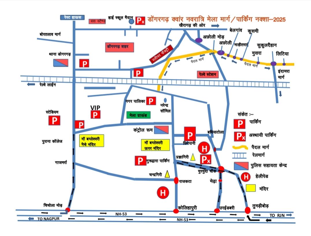 खैरागढ़ से आने वाले दर्शनार्थी हाई स्कूल परिसर में वाहन पार्किंग करेंगे।