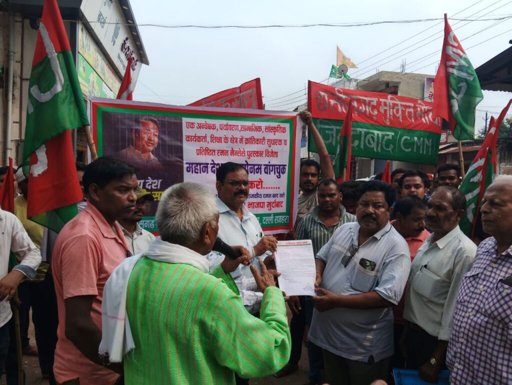 छत्तीसगढ़ मुक्ति मोर्चा द्वारा शनिवार को शहीद भवन कैम्प-1 से एक विशाल रैली निकालकर जैन भवन चौक होते हुए एसडीएम कार्यालय तक पहुंचकर विभिन्न ज्वलंत मुद्दों पर विरोध प्रदर्शन किया गया। इस रैली का मुख्य उद्देश्य समाजसेवी और वैज्ञानिक सोनम वांगचुक की बिना शर्त रिहाई की मांग करना था। रैली में सीजेआई न्यायमूर्ति गवई पर हुए जूते से अमानवीय हमले, दलित-आदिवासियों पर बढ़ते अत्याचार, धार्मिक अल्पसंख्यकों पर हो रहे हमलों और स्थानीय जनहित मुद्दों को लेकर नारेबाजी की गई।