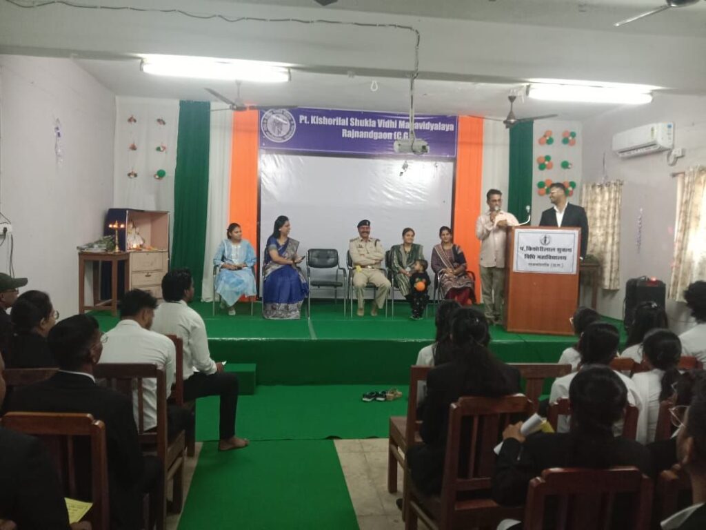 पं. किशोरी लाल शुक्ल विधि महाविद्यालय, राजनांदगांव में बुधवार को “सड़क सुरक्षा नियम, ट्रैफिक संकेत एवं उनका महत्व” विषय पर एक जागरूकता सत्र का आयोजन किया गया। यह कार्यक्रम ट्रैफिक पुलिस विभाग, राजनांदगांव के सहयोग से आयोजित हुआ, जिसका उद्देश्य छात्रों में सड़क सुरक्षा को लेकर जागरूकता बढ़ाना और उन्हें यातायात नियमों के उल्लंघन से होने वाले दंड तथा उनसे बचाव के उपायों की जानकारी देना था।