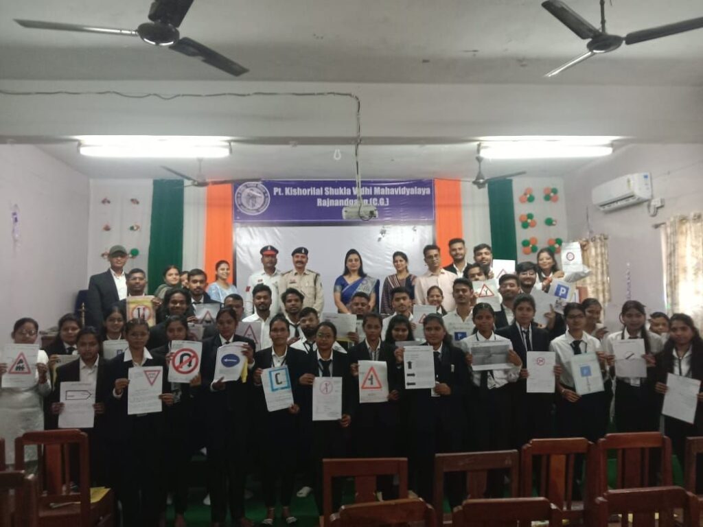 सड़क सुरक्षा जागरूकता सत्र का आयोजन — पं. किशोरी लाल शुक्ल विधि महाविद्यालय में छात्रों को बताया गया ट्रैफिक नियमों का महत्व