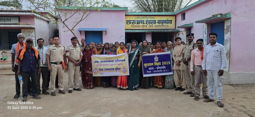 राजनांदगांव (छ.ग.)। विकासखंड डोंगरगांव के ग्राम बड़गांव में गुरुवार को राज्य शासन के सु-शासन तिहार 2025 के अंतर्गत शासकीय प्राथमिक शाला परिसर में “जन-जागरूकता अभियान” का आयोजन किया गया। इस कार्यक्रम का मुख्य उद्देश्य ट्रैफिक, साइबर अपराध और नशा मुक्ति के प्रति ग्रामीणों को जागरूक करना रहा। जिला पुलिस राजनांदगांव के नेतृत्व में संपन्न हुए इस अभियान में ग्राम पंचायत, पुलिस विभाग और स्थानीय महिला समूहों ने सक्रिय सहभागिता निभाई।
